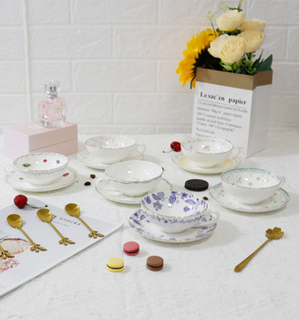 שקע במפעל מותאם אישית בסגנון אירופאי יוקרתי פרחוני עצם סין קפה כוס סט פורצלן להתאמה אישית