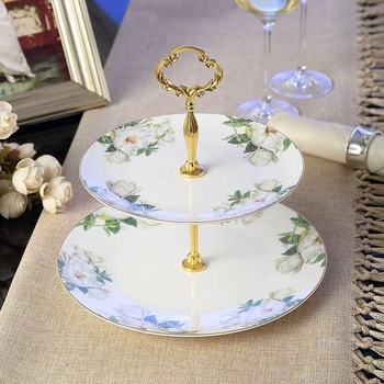 Creativo piatto di frutta bordato d'oro multistrato Bone China dolce torta per il tè del pomeriggio per la festa
