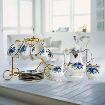 Di alta qualità 15 pezzi adesivo blu tazza da caffè in ceramica squisita di lusso pomeriggio Set da tè Bone China